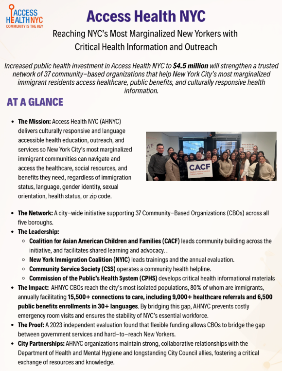 Access Health NYC: Reaching NYC’s Most Marginalized New Yorkers with Critical Health Information and Outreach (2026)