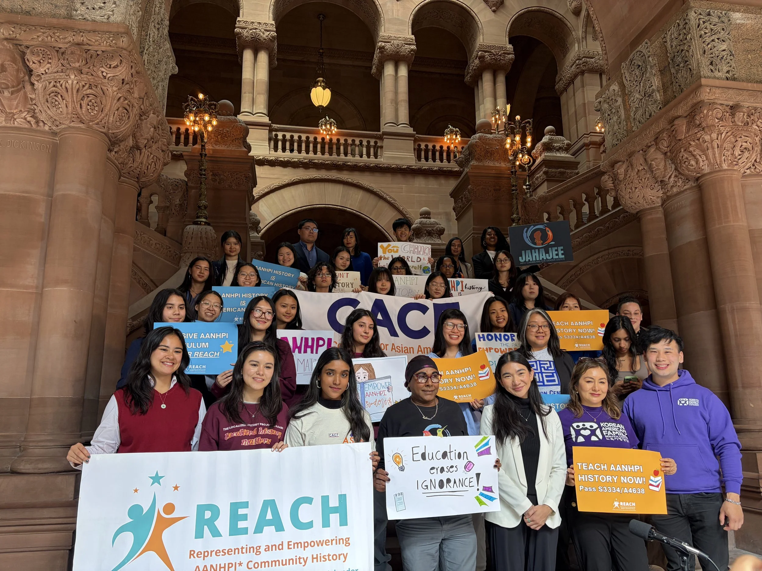 New York, NY (April 21, 2026) — April 21, 2026 (Albany, NY) — Today, the REACH (Representing and Empowering Asian American, Native Hawaiian, and Pacific Islander (AANHPI) Community History) Coalition and its member organizations rallied alongside community members, educators, students, and advocates on Albany's Million Dollar Staircase to urging passage of the AANHPI curriculum bill (S3334/A4638) as part of REACH's annual Advocacy Day. This legislation would ensure Asian American, Native Hawaiian, and Pacific Islander history is taught in public schools across New York State.